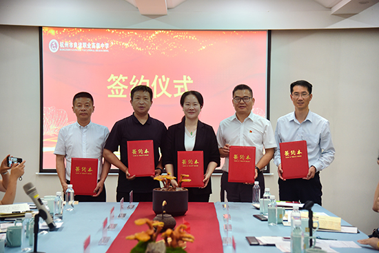 隨后舉行戰(zhàn)略簽約儀式,余杭區(qū)農(nóng)業(yè)農(nóng)村局何峰、良渚職高賀建誼、浙江省鄉(xiāng)村建設促進會副會長劉松、良渚片強村公司沈國勇、麟海蔬果何林海代表政校行村企五方簽約。