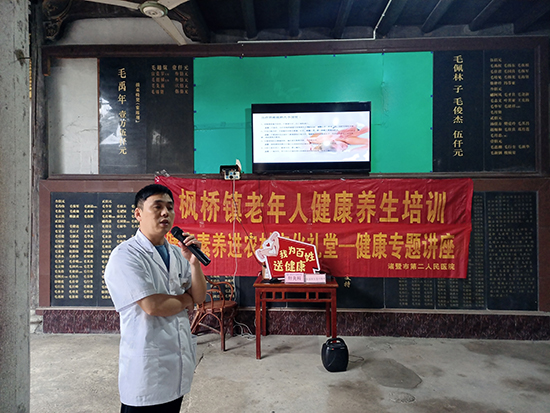 4月24日下午,諸暨市楓橋鎮(zhèn)社區(qū)教育學(xué)校邀請諸暨市第二人民醫(yī)院的專家鐘強(qiáng)來到楓橋鎮(zhèn)齊東村文化禮堂,為老年人講授養(yǎng)生知識。
