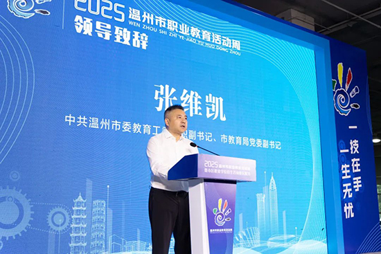 張維凱代表主辦單位致辭。張維凱指出,過去的一年里,溫州聚焦“職業教育與民營經濟深度融合”,持續完善職業教育政策體系、優化辦學條件、提升辦學能力、提高教育質量,為加快建設現代職業教育體系奠定堅實的基礎。2024年,全市職業學校學生共獲得世界職業院校技能大賽總決賽爭奪賽獎項16項,獲浙江省職業院校技能大賽獎項201項。全市職業學校新增省級中高職一體化教師教學創新團隊4支,專業教師入選“浙江工匠”7人,“甌越英才計劃-甌越工匠”18人。獲批浙江省首批縣域產業學院4個,職業教育長學制專業占比提高到46.4%。下一步,溫州將進一步深化職業教育改革,做好“調結構、提層次、拓空間、優服務、保質量”的五篇文章,大力推進職業院校“金專業”“金課程”“金師資”“金基地”“金教材”五金建設工程,讓職業院校辦好、技能人才吃香、校企合作活躍,全力打響“好學溫州”職教品牌。
