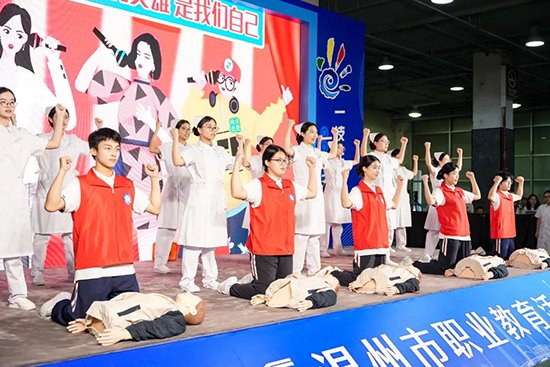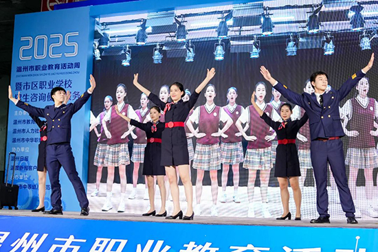 隨著《非凡之光》響起,溫州市中職專業展示拉開序幕,市區各中職學校的服裝制作、機械制造、工業機器人、形象設計、酒店管理、航空服務、戲劇表演、智慧康養等專業師生紛紛登臺,展示各自專業技能成果,盡顯新時代中職學校師生自信昂揚、蓬勃向上的奮進風采,贏得了現場觀眾的陣陣喝彩。
