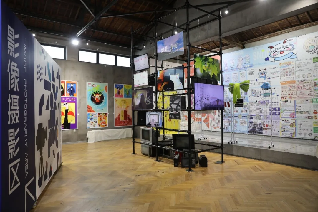 展覽現場分為平面設計區、影像攝影區與IP文創區三大板塊,涵蓋海報設計、書籍設計、IP設計、微電影、攝影等作品類型,呈現了兩岸高校在數字媒體和視覺傳達藝術設計中的探索與成果。