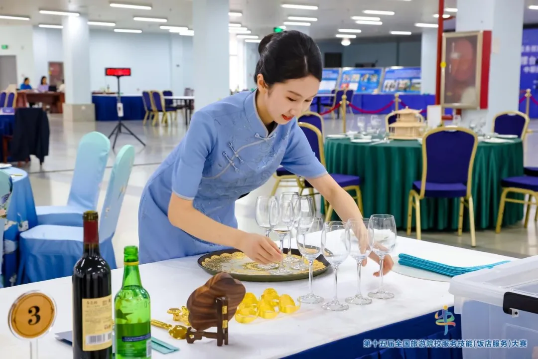 本次大賽共有來自全國28個省、自治區、直轄市的185所院校隊、596名選手報名參賽,分本科院校組、高職高專院校組和中職學校組,設中餐宴會擺臺、西餐宴會擺臺、客房服務、雞尾酒調制四個項目,通過理論、英語、實操三重考核檢驗選手綜合能力。