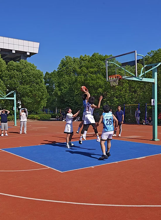 賽場上,各班籃球健兒們斗志昂揚,巧妙傳球、精準投籃,每一個精彩瞬間都彰顯著他們對籃球運動的熱愛與執著。球員們盡情釋放著青春的能量,體育精神通過球員們的拼搏與協作被詮釋得淋漓盡致。