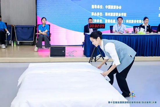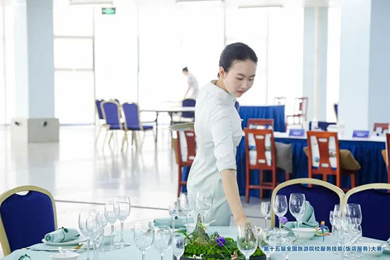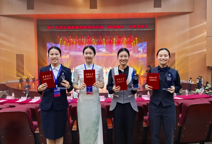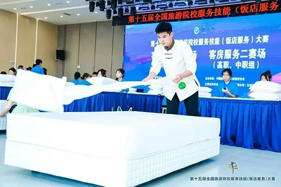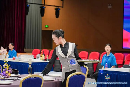 本次大賽匯聚全國28個省、自治區、直轄市的185所院校、596 名選手參賽,分本科院校組、高職高專院校組和中職學校組,設中餐宴會擺臺、西餐宴會擺臺、客房服務、雞尾酒調制四大競技模塊。各項目融合理論考核、英語測試、現場實操三重考核,全面考查學生飯店服務綜合能力。這場覆蓋全國28個省市的行業頂級賽事,堪稱“飯店服務界的奧林匹克”。學校選手優異成績的背后,是日均12小時的技能淬煉與超越 28省的競技印證,更彰顯了參賽學生的拼搏精神與指導教師團隊的匠心培育。