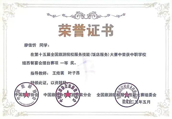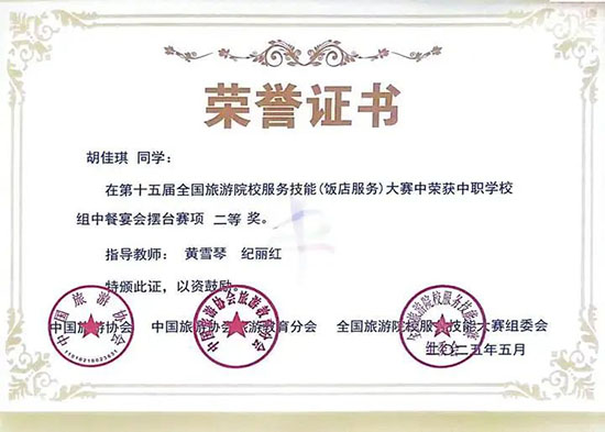 西餐宴會擺臺賽項一等獎(第3名)