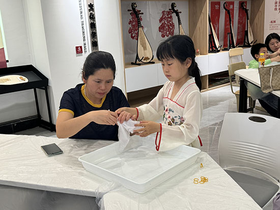 活動吸引了全市十五組家庭參與,孩子們在家長的陪伴下,共同體驗了這一傳統技藝的魅力。活動開始前,授課老師詳細介紹了植物扎染的歷史背景、文化內涵以及基本技法,讓孩子們對這一非遺項目有了初步的了解。