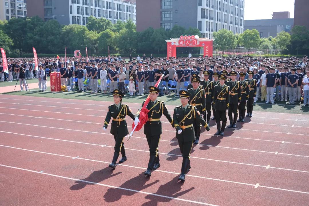 副校長將“決勝高考”的大旗授予高三年級教務主任樓迪老師接旗獵獵作響的旗幟,宛如燃燒的火焰點燃了每一個人的斗志。全體學子高舉右拳,誓言如雷。隨著激昂的《少年中國說》響起,全體師生再次跨越成人門邁向充滿無限可能的新征程。