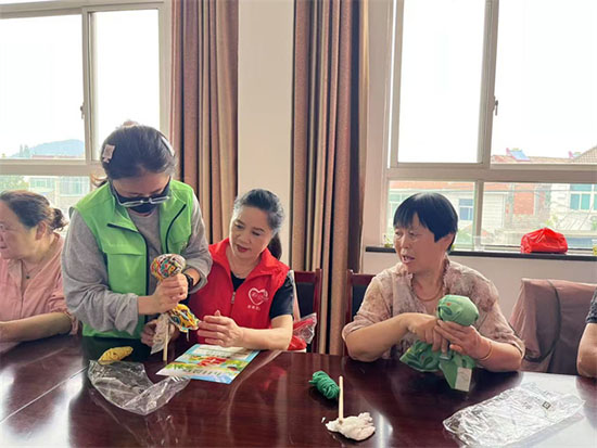 經過近兩個小時的努力,一個個造型可愛、散發著淡淡艾草香的養生錘在老人們手中誕生。大家拿著自己的作品愛不釋手,紛紛表示要把養生錘帶回家,好好利用它進行日常保健。