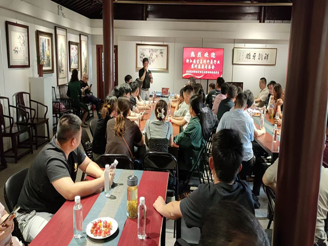 培訓課程設計兼具深度與廣度,既有制扇歷史、選材工藝等理論教學,也有開料、雕刻、組裝等全流程實操指導。國家級工藝美術大師邢偉中親臨授課,從非遺傳承角度解析扇藝精髓;本地資深匠人張國斌現場示范傳統技法,助力學員精進技藝。此外,培訓還組織學員赴蘇州扇藝館參觀交流,蘇州工藝協會丁會長以"蘇扇與昌碩扇的融合發展"為題分享經驗,拓寬了從業者的行業視野。