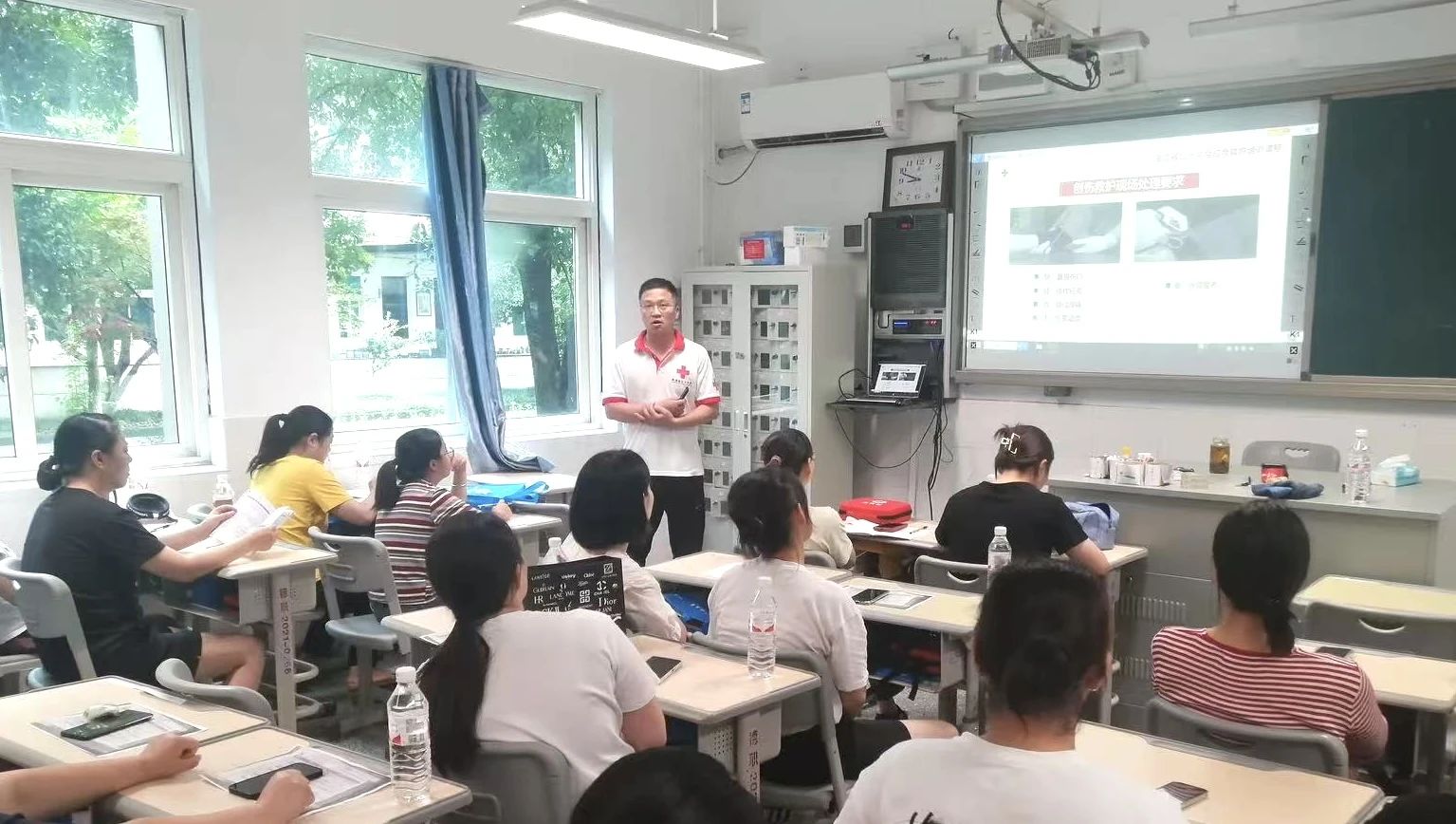 學(xué)校高度重視普及急救教育,現(xiàn)有急救培訓(xùn)多媒體教室20個(gè)、心肺復(fù)蘇人體模型20個(gè)、教學(xué)模擬機(jī)3臺(tái),擁有省級(jí)救護(hù)師15人、市級(jí)考評(píng)員2人。通過“三進(jìn)兩訓(xùn)一練”模式(應(yīng)急救護(hù)進(jìn)校園、課堂、企業(yè);師生救護(hù)培訓(xùn);應(yīng)急演練),構(gòu)建急救育人體系。近三年,累計(jì)開展教師急救取證培訓(xùn)2000人次、學(xué)生1500人次,普及培訓(xùn)3500余人次。