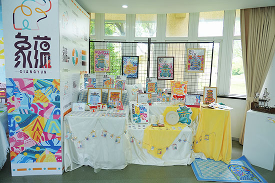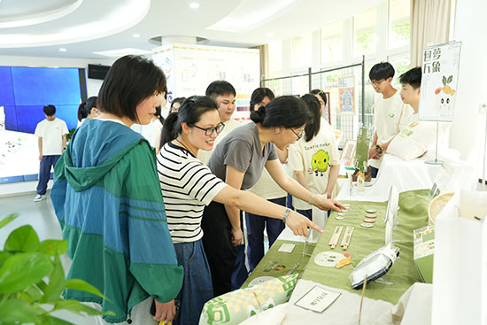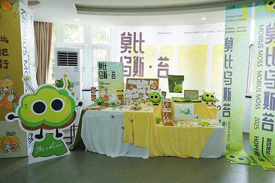 “莫比烏斯?苔”這一主題融合了“苔花如米小,也學牡丹開”的堅韌精神與莫比烏斯環(huán)的無限循環(huán)意象,展現(xiàn)了傳統(tǒng)文化在創(chuàng)新中永續(xù)發(fā)展的可能。在展覽中,五大創(chuàng)意項目各具特色。國潮品牌“枇杷行”將明黃色調(diào)與中國水墨元素完美結(jié)合,打造出溫婉靈動的“蘆枝”形象;“笨胖魚”系列用高飽和色彩構(gòu)建童趣海洋世界,為海產(chǎn)品注入鮮活個性;非遺美食“包蘿萬象”通過清新自然的包裝設(shè)計,讓傳統(tǒng)蘿卜團煥發(fā)新生;“海天之靈”項目則用藝術(shù)手法呼吁保護棲息在象山的中華鳳頭燕鷗;而“象蘊”系列通過12處地標建筑的創(chuàng)意插畫,繪制出一幅生動的文旅地圖。“我們同學希望這些作品不僅是藝術(shù)創(chuàng)作,更能成為象山文旅的新名片,吸引更多人來探索這座東海小城的獨特韻味。”專業(yè)指導教師王佳妮動情地表示。