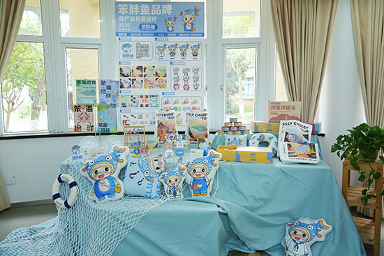 “要讓象山特產(chǎn)不僅‘顏值在線’,更能‘開口講故事’。”學生代表李欣然的話語道出創(chuàng)作初心。展覽現(xiàn)場,象山枇杷以國風少女“蘆枝”的形象亮相,海產(chǎn)品變身為萌趣十足的“笨胖魚”,就連樸實的蘿卜團也擁有了寓意團圓的“福生”IP形象。