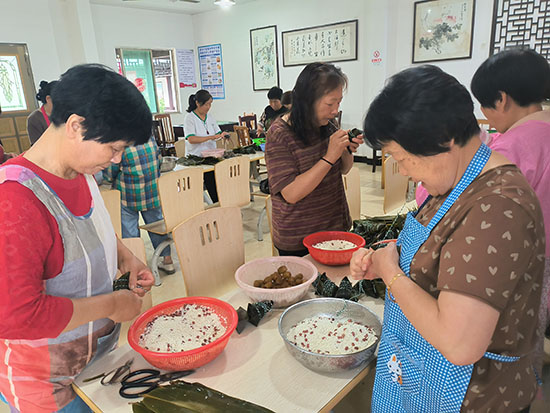 活動突破傳統包粽子模式,創新設置“端午文化微課堂”。村老年協會會員陳育成化身講解員,從屈原典故到湖州艾草香囊習俗,從“五黃宴”飲食文化到龍舟競渡淵源,帶領長者們重溫端午文化脈絡。老人們邊包粽子邊分享記憶,85歲的王爺爺展示珍藏的老家堂前端午掛飾,引得眾人贊嘆連連。活動同步開設“端午攝影角”,用影像記錄銀齡笑顏,留存文化記憶。