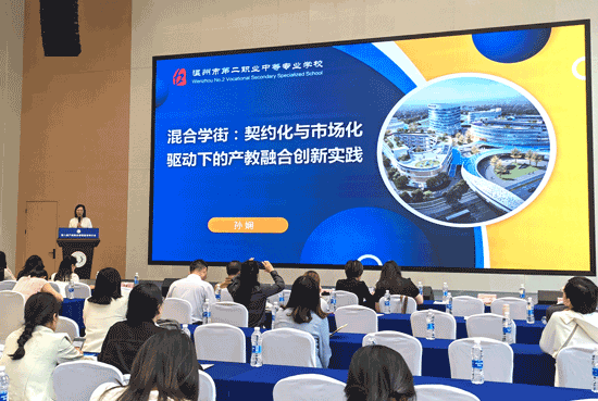 近日,在第八屆產教融合課程建設研討會上,溫州市第二職業中等專業學校作為全國唯一受邀中職學校代表,由社會服務處主任孫嫻老師以《混合學街:契約化與市場化驅動下的產教融合創新實踐》為題,分享了學校在產教融合領域的突破性探索,引發與會專家高度關注。