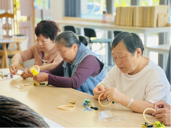在制作過程中,老人們?nèi)褙炞ⅲ麄冋J真地擺弄著手中的材料,眼神中透露出專注與投入。盡管部分老人在操作精細動作時稍顯遲緩,但他們相互幫助、彼此交流,現(xiàn)場充滿了溫暖與協(xié)作的氛圍。有的老人遇到難題時,身旁的伙伴會主動伸出援手,共同探討解決辦法;有的老人則發(fā)揮創(chuàng)意,為自己的掛件增添獨特元素,現(xiàn)場不時傳來陣陣歡聲笑語。