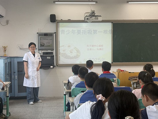 在世界無(wú)煙日來(lái)臨之際,5月29日,安吉社區(qū)教育學(xué)院天子湖分院積極行動(dòng),特別邀請(qǐng)了天子湖中心衛(wèi)生院的馬滿紅醫(yī)生,為高禹小學(xué)502班的學(xué)生帶來(lái)了一場(chǎng)別開(kāi)生面的“青少年要拒吸第一根煙”健康知識(shí)講座。?