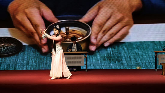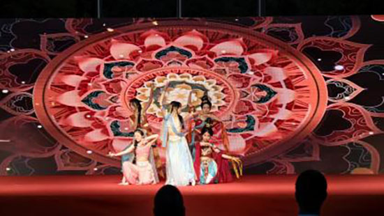 當搖滾的熱血漸漸沉淀,同學們沿著時光長河溯流而上,回到了千年前那個駝鈴悠揚的敦煌,沉浸感受了由2222班楊芷杭等同學帶來的舞蹈《萬物生》。