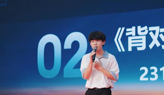 臨平區十佳歌手2317班劉奧同學深情演繹了《背對背擁抱》,打動了現場的每一位觀眾。
