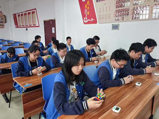 “魔方達(dá)人”校園挑戰(zhàn)賽堪稱腦力與手速的精彩對(duì)決。5月8日星期四中午,14位選手參加了第五屆“魔方達(dá)人”校園挑戰(zhàn)賽。經(jīng)過激烈的角逐,24機(jī)電高考2班的謝斌以 “三階魔方 18 秒復(fù)原、四階魔方 1 分 12 秒” 兩個(gè)第一的亮眼成績摘得桂冠。比賽中,選手們屏息凝神,魔方在指尖飛速旋轉(zhuǎn),色塊如彩虹般流動(dòng),不僅展現(xiàn)了個(gè)人的空間思維能力,更在觀眾的加油聲中搭建起無形的情感橋梁。