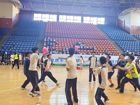 5月21日的學(xué)校體育館成為歡樂的海洋,6個(gè)班級(jí)在人際拓展活動(dòng)中上演了一場(chǎng)場(chǎng)“團(tuán)隊(duì)協(xié)作大挑戰(zhàn)”。“圈動(dòng)你我”游戲中,呼啦圈在不松手的隊(duì)伍里“翻山越嶺”,24商務(wù)大專班的同學(xué)用眼神和身體弧度傳遞信號(hào),有人笑稱:“原來肢體語言比說話更有默契!”