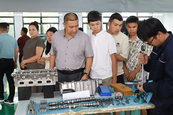 考察團(tuán)首先實地走訪了學(xué)校產(chǎn)教融合實踐基地。在汽修車間,智能化實訓(xùn)設(shè)備與真實企業(yè)場景的無縫銜接令來賓駐足;門業(yè)生產(chǎn)線展示了從設(shè)計到成品的全鏈條工藝,凸顯“校中廠”模式特色;模具產(chǎn)學(xué)研中心則通過高精度數(shù)控設(shè)備與師生創(chuàng)新成果,生動詮釋了“產(chǎn)學(xué)研用”一體化培養(yǎng)理念。