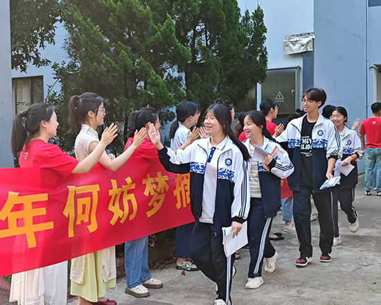 6月7日上午7:20,衢州第二中等專業學校校園內涌動著一片紅色暖流。校領導與高三教師們身著印有“加油100分”的紅色T恤,部分女教師還特意換上寓意“旗開得勝”的旗袍,在高三教學樓下整齊列隊,與即將奔赴考場的高三學子一一擊掌,送上真摯的祝福與鼓勵。