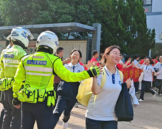 7:40分,在警車的開道護送下,16輛送考大巴組成車隊緩緩駛出校園,奔赴考場。“老師們用擊掌的方式讓我們放松心情,警車開道更讓我感受到滿滿的儀式感,我一定會全力以赴!”一名高三學生激動地說。校長吳曉彩表示:“紅色代表喜慶,擊掌傳遞力量,這是我們一貫堅持的送考傳統。”(郭超婷)