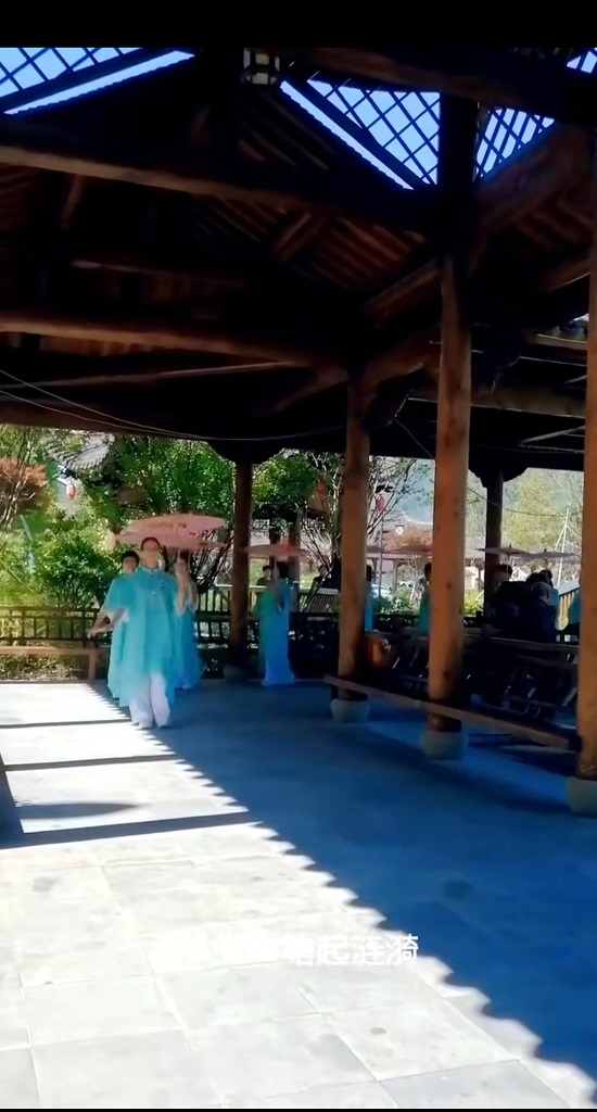 永和橋作為承載數(shù)代人記憶的省級文保單位,其青石板路與雕花木梁見證了時光流轉(zhuǎn)。活動當(dāng)日,老年學(xué)員們精心梳妝,復(fù)古綠羅裙的素雅配色與古橋的滄桑質(zhì)感相得益彰,油紙傘上的傳統(tǒng)紋樣與橋身彩繪相映成趣。隊伍從永和橋出發(fā),沿永和廣場走廊緩緩前行,步履間雖無青春激揚,卻多了份歷經(jīng)歲月沉淀的從容——碧綠溪水中,銀發(fā)與傘影、古橋與云天共同勾勒出“歲月不敗美人”的生動圖景,不少游客駐足感嘆:“這才是傳統(tǒng)文化與生活美學(xué)的自然融合。”
