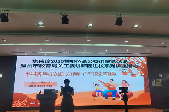 為切實(shí)推進(jìn)心理健康工作的高質(zhì)量發(fā)展,持續(xù)完善青少年心理健康工作體系,有效提升學(xué)生心理健康水平,營(yíng)造校園陽(yáng)光和諧、積極向上的氛圍,近期,龍灣區(qū)職業(yè)技術(shù)學(xué)校特邀溫州市教育局關(guān)工委講師團(tuán)國(guó)家二級(jí)心理咨詢師、血型性格色彩金牌講師焦偉珍老師,為家長(zhǎng)帶來(lái)一場(chǎng)題為《讀懂孩子 從心開始——性格色彩助力親子有效溝通》的精彩講座。