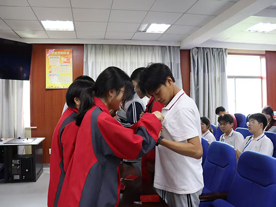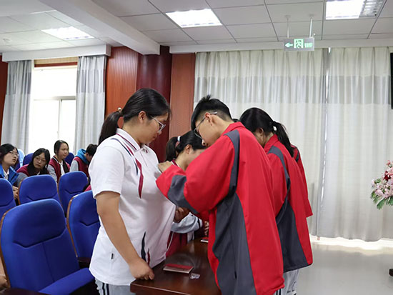 老團(tuán)員向新團(tuán)員代表頒發(fā)團(tuán)員證、佩戴團(tuán)徽。鮮紅的團(tuán)徽閃耀在新團(tuán)員的左胸,象征著責(zé)任與使命,時(shí)刻提醒他們以團(tuán)員標(biāo)準(zhǔn)嚴(yán)格要求自己,在校園生活中踐行青春誓言,成為新時(shí)代青年的榜樣力量。