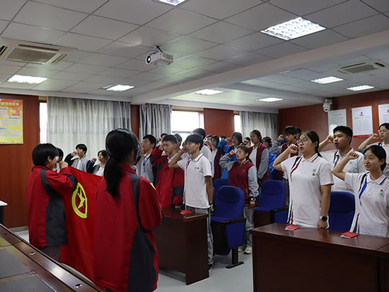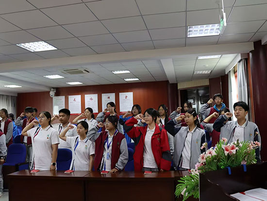 入團(tuán)儀式在莊嚴(yán)嘹亮的國歌聲中拉開序幕。