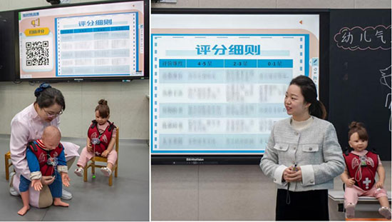 “不好!寶寶被糖果卡住了!”在諸暨職教中心的智慧教室里,一場驚心動魄的急救演練正在進行。幼兒保育專業張艷老師與護理專業石佳茹老師聯袂開展《氣道異物阻塞應急處置》公開課。課堂創新采用“VR+實體”雙軌模式,學生先在虛擬平臺演練海姆立克手法,再通過特制馬甲進行實體操作。雙師協同有效解決成人手法兒童化難題。課程還設置“家長panic”情境劇,讓學生在搶救同時練習安撫技巧,全面提升職業素養。“這堂課讓我們既掌握了急救技能,更讀懂了保育員的使命。”參與學生如是說。這場跨界教學實踐,為培養“技術+情懷”兼備的新時代保育人才提供了鮮活范本。