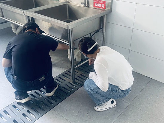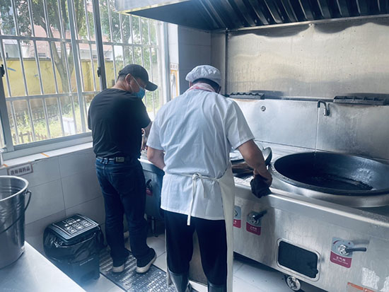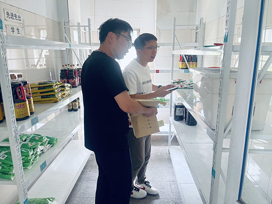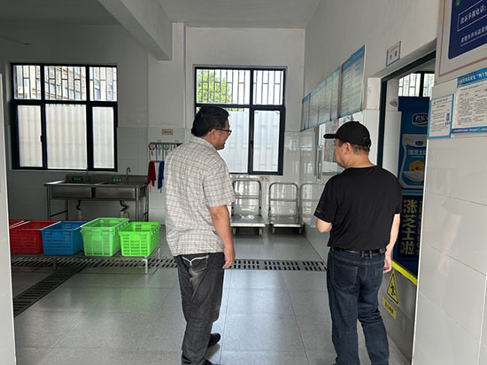 第一組以總務主任樓翔為組長,王保東、孫文明為組員來到諸暨市楓橋鎮洪綬小學食堂,楓橋鎮洪綬小學副校長何聰聰、總務主任郭鵬程與食堂主任吳立章早已待在食堂門口。樓翔著重核對出入庫帳目,與食堂主任走進儲藏室,檢查出入庫登記情況表,核對賬目與實物是否對應;庫存食品是否與帳目相一致;調味品等食材儲藏是否符合要求。王保東、孫文明兩人檢查絞肉機、攪面機、蒸箱,有否清洗、消毒;食堂相關設施設備有否定期維護、檢驗;三防設施是否到位;下水道擋鼠網是否完善;匯同學校人員對食堂的角角落落等進行一一檢查,確保無遺留與死角,對存在的問題當即反饋予以整改。檢查完畢后,隨即到諸暨市楓橋鎮中心幼兒園與諸暨市楓橋鎮第二幼兒園的食堂作同樣檢查。另一組由中心學校分管食堂的周勝國帶隊,安管主任郭燁與工會副主席王國永為組員前往楓橋鎮初級中學與楓橋鎮王冕小學開展檢查。中心學校對檢查中存在的問題集中下發學校具體落實整改。
