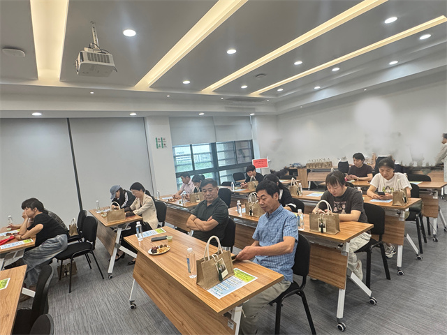培訓室內,茶香裊裊。大付老師身著素雅茶服,一開場便以親切的話語拉近了與學員們的距離。他先從茶葉的基礎知識講起,詳細介紹了綠茶、紅茶、烏龍茶等不同茶類的特點、產地、制作工藝,還結合安吉當地特色,著重講解了安吉白茶的獨特之處,讓學員們對茶葉有了更全面深入的認識。