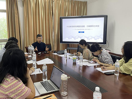 活動邀請正高級教師潘榮輝開展《科創教育研究課題的選題、方案撰寫與申報》專題講座。潘老師從核心價值、開發策略、方案撰寫、課題實施等方面,結合典型案例進行實操指導。互動環節中成員踴躍提問,潘老師逐一解答,為后續課題研究打下扎實基礎。
