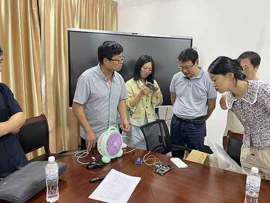 最后,沈亞東老師展示了一個科創實物成果——“語音智能控制風扇”。通過簡單的語音指令,風扇即可實現開和關,生動體現了人工智能與生活的結合。這一演示不僅激發了成員們的創新靈感,更傳遞了工作室的理念:”科創源于生活,教育回歸實踐。”
