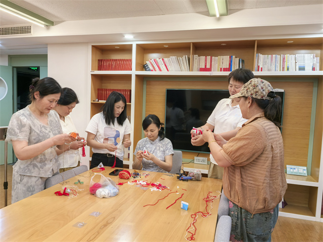 本次培訓(xùn)精心設(shè)計并開展了四次課程。課堂上,方玲老師憑借豐富的經(jīng)驗和精湛的技藝,手把手教學(xué)員們編織繩編掛毯、一舉高“粽”(中)、繩編香包等精美作品。從基礎(chǔ)的繩結(jié)編織方法,到復(fù)雜的圖案設(shè)計與組合,方玲老師都耐心細(xì)致地講解示范,學(xué)員們認(rèn)真聽講、積極動手實踐,遇到難題時,方玲老師也會及時給予指導(dǎo)和幫助。