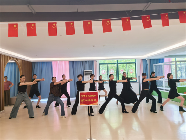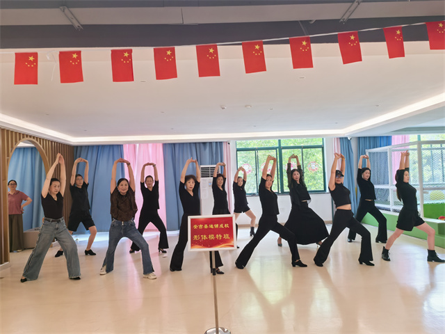 6月2日清晨,陽光透過安吉縣社區(qū)教育學(xué)院遞鋪分院排練室的落地窗灑在木質(zhì)地板上,遞鋪成校形體模特隊的20余位學(xué)員身著統(tǒng)一訓(xùn)練服,已整齊列隊開始熱身。這些學(xué)員來自遞鋪街道13個不同村鎮(zhèn)、社區(qū),年齡跨度從40歲到65歲,卻因?qū)γ赖墓餐非笙嗑塾诖恕?/p>