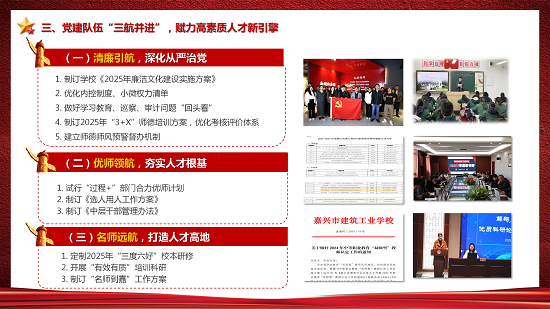 會(huì)議提出,2025年學(xué)校黨建將聚焦政治引領(lǐng)、協(xié)同治理、育人實(shí)效、組織建設(shè)、隊(duì)伍鍛造等重點(diǎn)任務(wù),奮力打造具有職業(yè)教育特色的黨建新標(biāo)桿。