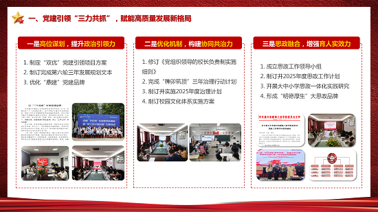 一是聚焦“三力共抓”,通過(guò)高位謀劃提升政治引領(lǐng)力、優(yōu)化機(jī)制構(gòu)建協(xié)同共治力、思政融合增強(qiáng)育人實(shí)效力,賦能高質(zhì)量發(fā)展新格局;二是推進(jìn)“三步同頻”,通過(guò)筑牢組織堡壘邁好先鋒步伐、激活黨建動(dòng)能跑出奮進(jìn)步伐、凝聚奮進(jìn)合力走好協(xié)同步伐,賦效高水平建設(shè)新作為;三是實(shí)施“三航并進(jìn)”,通過(guò)清廉引航深化從嚴(yán)治黨、優(yōu)師領(lǐng)航夯實(shí)人才根基、名師遠(yuǎn)航打造人才高地,賦力高素質(zhì)人才新引擎。會(huì)議希望全體黨員把初心落在行動(dòng)上,把使命擔(dān)在肩膀上,以昂揚(yáng)之姿、奮進(jìn)之態(tài),積極投身到學(xué)校高質(zhì)量發(fā)展的各項(xiàng)建設(shè)中。