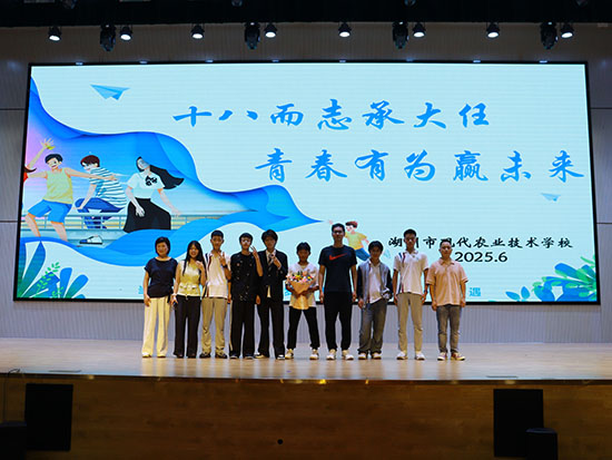 6月13日,湖州市現代農業技術學校“十八而志承大任,青春有為贏未來”2026屆學生成人禮在藝體館隆重舉行。校長呂富、副校長俞巍毅、副校長陸冬梁、工會主席沈悅峰出席了本次成人儀式。本次成人儀式由高職預科2301班倪津杰和寵物養護2301班段忠潤同學主持。