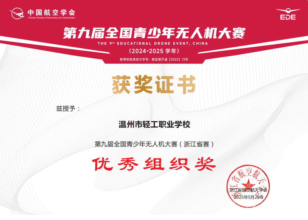 此次大賽,報名人數突破4000人,吸引全省300余所中小學、職高的青少年選手同場競技。溫州市輕工職業學校共計11名同學參加,經過努力拼搏,全員取得喜人的成績,學校也榮獲優秀組織獎!學校同學多人入圍國賽,期待他們在國賽舞臺上更加出色的表現。
