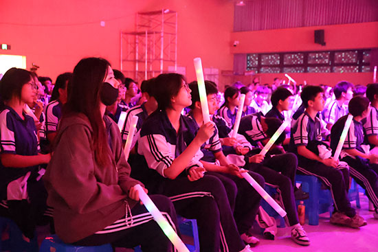 活動由2415班李浩博、2411班俞雨彤兩位學生主持,該校師生樂隊以一段激情澎湃的演奏拉開了活動序幕,鏗鏘的鼓點與躍動的旋律瞬間點燃全場。《不重逢》《得知平淡珍貴的一天》《易燃易爆炸》《麻雀》……一首首洋溢著青春氣息、有著多元曲風、展現選手音樂才華的歌曲逐一登場演唱,引爆全場,歌聲中綻放出不凡的光芒,而中場時的學生街舞社團帶來的活力舞蹈《diamond》將氣氛推向高潮,展現了學子蓬勃的青春風采。2025年杭州市臨平區中學生“十佳歌手”得主、2214班的馬星同學也來到現場,獻唱經典曲目《大山》,精湛的演唱技巧與感染力為現場觀眾帶來震撼體驗。