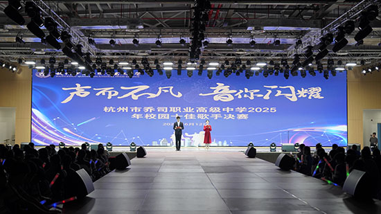 6月13日晚,杭州市喬司職業高級中學新校區“時尚藝術中心”2000平方的秀場內,燈光璀璨,歡呼聲、掌聲不時響起,“聲而不凡·音你閃耀”2025年校園十佳歌手決賽在此盛大舉行,15組經過層層選拔的選手依次登臺,用歌聲詮釋青春與夢想,演繹新時代青少年對音樂的熱愛。校級領導、中層干部以及部分班級學生歡聚現場,其他師生則通過直播欣賞這場校園音樂盛會。