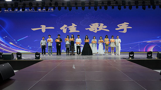經過激烈角逐,該校喻新凱副校長宣布“校園十佳歌手”和“優秀歌手獎”獲獎名單。獲獎選手在歡呼聲中登臺領獎,校領導為其頒發獎杯和榮譽證書并合影留念,掌聲與燈光共同為這些追夢學子加冕。