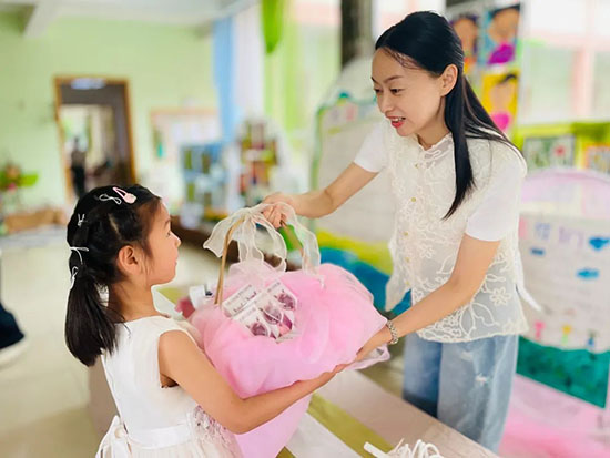 幼兒園為每一位幼兒精心準備了“六一”的節日禮物,園長媽媽陳咪咪親手為幼兒們送上。小小禮物、大大滿足!