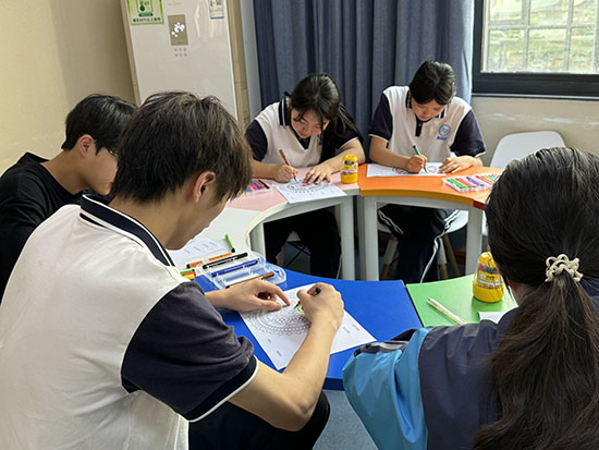 隨后,培訓(xùn)進(jìn)入實(shí)踐環(huán)節(jié)。柳老師為每位學(xué)生發(fā)放了曼陀羅繪畫模板和彩筆,并引導(dǎo)學(xué)生們靜下心來,拋開雜念,將自己當(dāng)下的情緒和感受通過色彩和線條表達(dá)在紙上。有的學(xué)生選擇用明亮的色彩勾勒?qǐng)D案,試圖驅(qū)散內(nèi)心的陰霾;有的學(xué)生則用深沉的色調(diào)填充畫面,將積壓已久的焦慮盡情釋放。整個(gè)教室安靜而專注,只聽見畫筆在紙上滑動(dòng)的沙沙聲。?