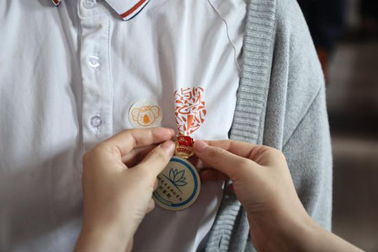 隨后,團委老師為新團員佩戴團徽并頒發團員證。這枚小小的團徽背后,是無數共青團員對理想信念的堅守和接續奮斗的決心。