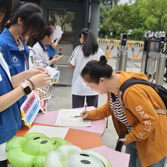這個系列活動堪稱“快樂制造機”!微笑日當天,校門口變身超暖“能量補給站”——老師們戴著燦爛笑容,手持“棒棒大拇指”貼紙在校門口迎接每一位同學,貼上貼紙的瞬間,鼓勵與溫暖“一鍵送達”。大家還紛紛在特制橫幅上簽字,用畫筆勾勒出獨一無二的笑臉,原本普普通通的橫幅,不一會兒就被色彩斑斕的笑臉填滿,整個校園都洋溢著歡樂的氛圍!