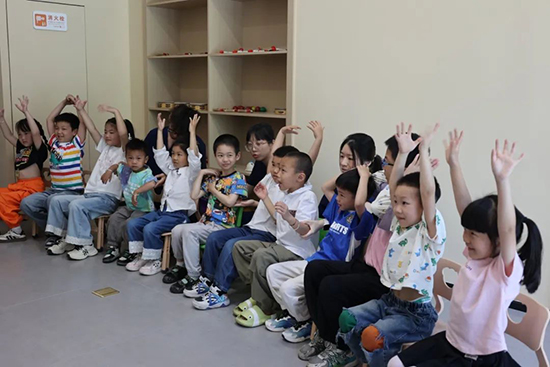 “用游戲叩響心門”環(huán)節(jié)成為連接的起點。“猜猜我是誰”“星光傳遞”等趣味活動中,普通兒童與殘疾兒童手拉手完成肢體協(xié)作與音樂律動,在笑聲中打破陌生壁壘。當(dāng)孩子們圍著圓圈傳遞星光道具時,平等互助的伙伴關(guān)系自然生長,隔閡在互動中悄然消融。